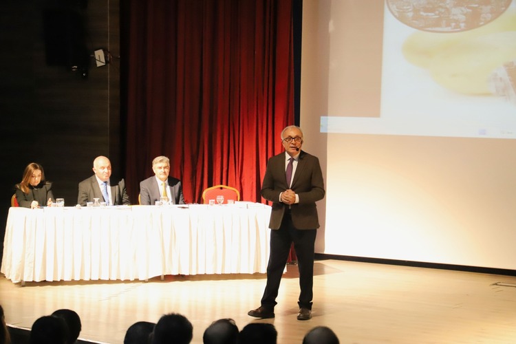 Ardahan ÜniversitesiTarım ve Hayvancılık Bilimleri Enstitüsü olarak düzenlediğimiz “Geleneğin Yöresi Ardahan’da Tarım” paneli, 12 Şubat 2026 tarihinde Aşık Şenlik Kültür Merkezi’nde gerçekleştirildi. Enstitümüz Müdür Yardımcısı Kemal Yazıcı’nın moderatörlüğünde yürütülen panele; Ticaret Bakanlığından Hayati Başaran, Cumhurbaşkanlığı Strateji ve Bütçe Başkanlığından Nebi Çelik ve üniversitemiz öğretim üyesi Özlem Eştürk panelist olarak katılım sağladı. Programın açılışında konuşan Rektörümüz Öztürk Emiroğlu, Ardahan’ın tarım ve hayvancılık potansiyeline dikkat çekerek üniversitemizin bölgesel kalkınma odaklı bilimsel üretim vizyonunu kararlılıkla sürdürdüğünü vurguladı. Rektörümüz, bölgesel kalkınma odaklı en önemli projelerden biri olan Hayvan Sağlığı Araştırma ve Uygulama Hastanesi’nin resmî olarak yatırım programına alındığını belirterek, bu sayede hayvan sağlığına yönelik ileri tetkik ve tedavi süreçlerinin üniversitemiz bünyesinde gerçekleştirileceğini ifade etti; ayrıca projeye sağlanan destekler dolayısıyla Cumhurbaşkanımız Recep Tayyip Erdoğan’a, YÖK Başkanımız Erol Özvar’a ve Milletvekilimiz Kaan Koç’a teşekkürlerini sundu. Açılış konuşmalarının ardından enstitümüz koordinasyonunda gerçekleştirilen “Tarımın Ekonomik ve Kalkınma Boyutu” başlıklı oturumda, davetli konuşmacı Hayati Başaran “Türkiye’de Tarım” başlıklı sunumunda sektörün ekonomik yapıdaki stratejik konumunu analiz ederek sürdürülebilir üretim, planlı kalkınma ve dış ticaret entegrasyonunun önemine değindi. Oturumda ayrıca Nebi Çelik kalkınma planlarındaki güncel tarım politikalarını değerlendirirken, Özlem Eştürk Avrupa Birliği ortak tarım politikaları ile Türkiye tarımı üzerine karşılaştırmalı analizler sundu. Panelin kapanış bölümünde, Ardahan’ın tarım ve hayvancılık kapasitesinin bilimsel zeminde ele alınmasının bölgesel kalkınma sürecine sağlayacağı stratejik katkılar bir kez daha vurgulandı. Program, katılımcıların sorularının yanıtlanmasının ardından panelistlerimize teşekkür belgelerinin takdim edilmesi ve toplu fotoğraf çekimi ile sona erdi.
